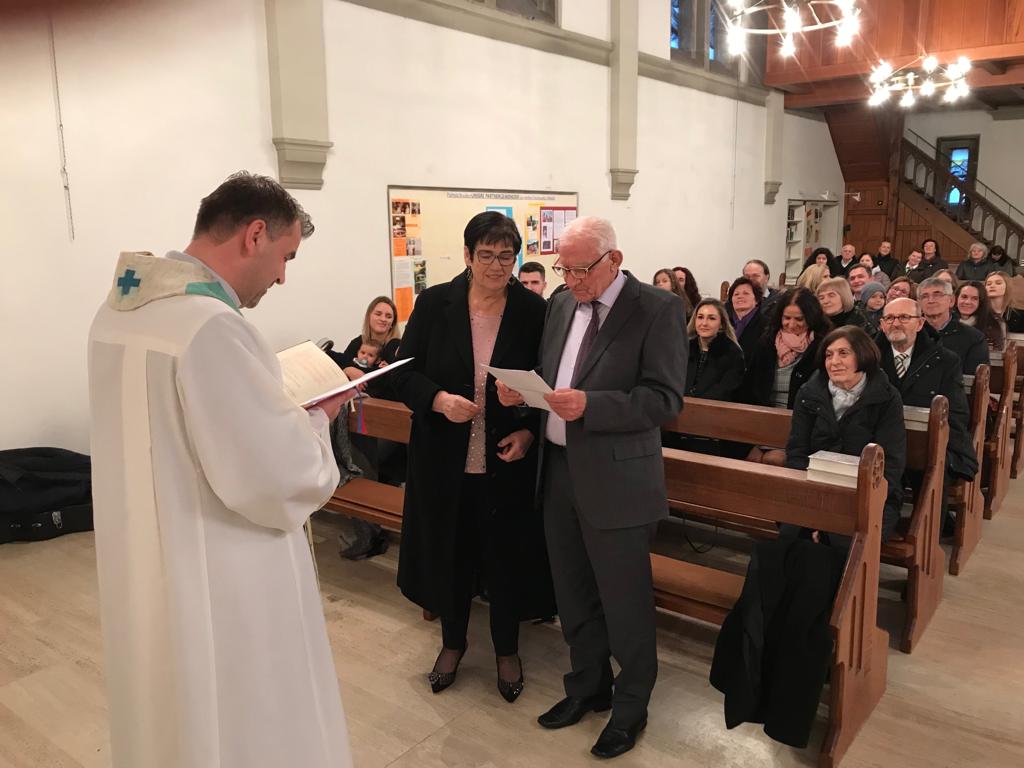 U crkvi sv. Bonifacija u Böblingenu u subotu 26. 01. 2019., Vladimir Ćorić i Radica r. Soldo proslavili su 50 godina bračnog zajedništva. Vladimir i Radica vjenčali su se 26. 01. 1969. godine u crkvi Uznesenja Blažene Djevice Marije na Širokom Brijegu. Vladimir je u Njemačku došao 1963. godine, a poslije vjenčanja dolazi i Radica s njim. Bog ih je u zajedničkom životu obdario s dvoje djece i petero unučadi. Svetu misu predvodio je župnik fra Ivica Erceg koji je u propovijedi zahvalio Vladimiru i Radici što su ostali vjerni svojim zavjetima koje su izrekli na dan svojega vjenčanja prije 50 godina. Misu je skladnim sviranjem i pjevanjem uveličo Mile Herceg. Nakon mise slavlje se nastavilo kod obitelji Ćorić. Vladimiru i Radici želimo puno zdravlja i obilje Božjeg blagoslova.